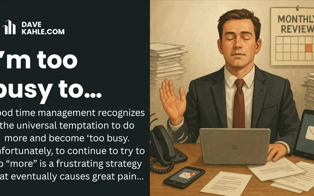 Without the discipline of a monthly routine of assessment, review and recommitment, it’s just too easy to default to the potential-robbing, mindless excuse, “I’m too busy to….”
