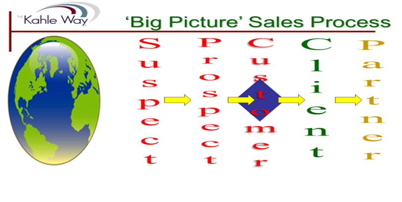 The final step of the process is one that many sales systems don’t formally acknowledge – to their own detriment.  That is moving a client to a partner.  A partner is an individual or organization that buys almost everything they can from you and is committed and loyal to you.