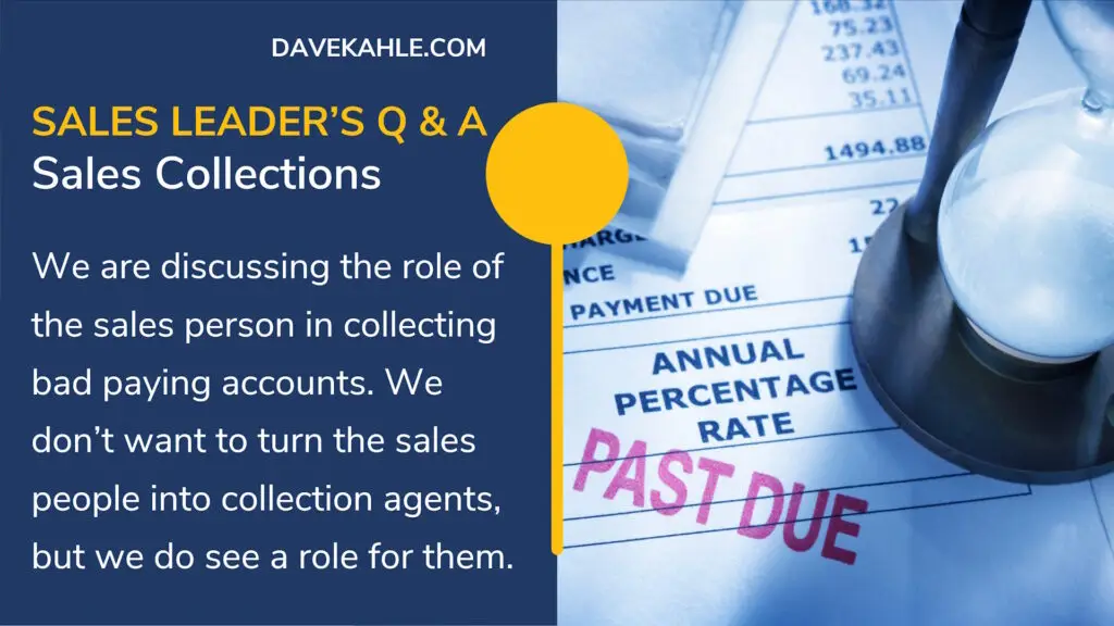 Question: We are discussing the role of the sales person in collecting bad paying accounts. We don’t want to turn the sales people into collection agents, but we do see a role for them. What are your thoughts?...
