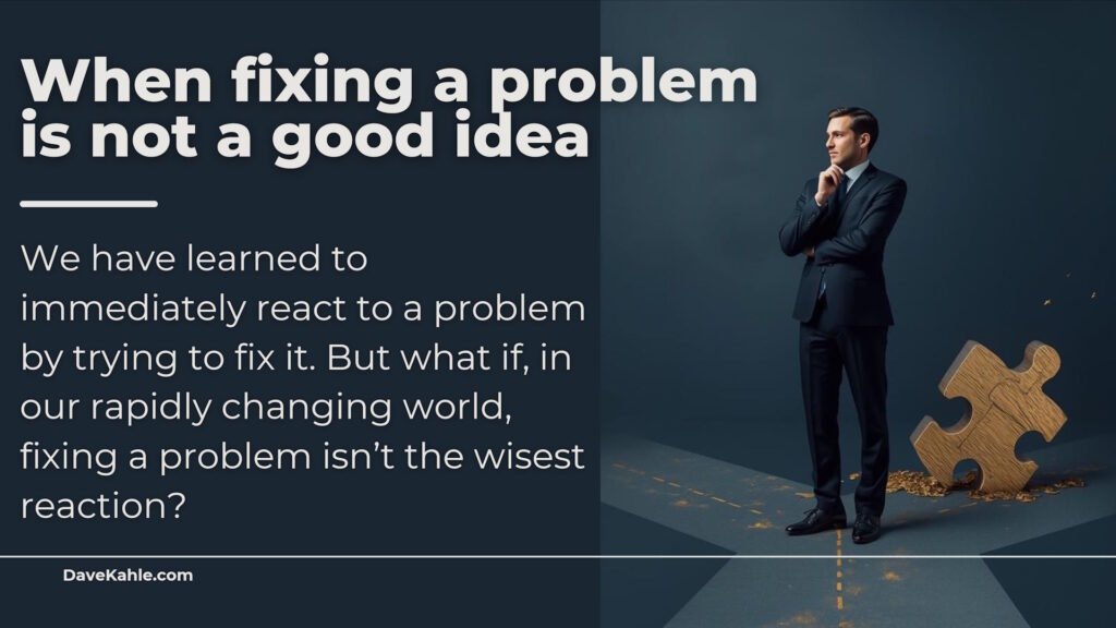 by Dave Kahle          Whenwe are confronted with a problem, our knee-jerk reaction is to fix it. I’m not talking about common day-to-day problems – a faucet begins to leak, we run out of milk, etc.—but rather...