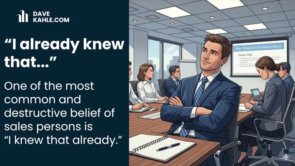 by Dave Kahle One of the most destructive beliefs that hinder a person’s development.Over my 30+ year career, I’ve presented hundreds, maybe even thousands of seminars, and interacted with tens of thousands of salespeople. I’ve learned some things.  One is...