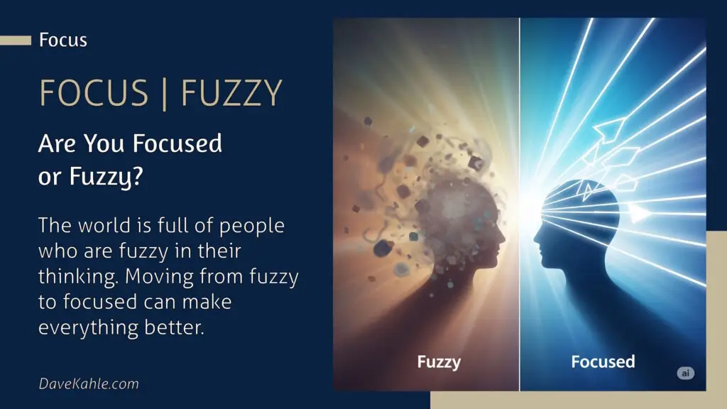 by Dave Kahle One of The 25 Most Important Things I’ve Learned Most people operate in the Fuzzy zone.  Learning to focus can make everything better.  That is one of the most important lessons I’ve learned.            A little background. ...
