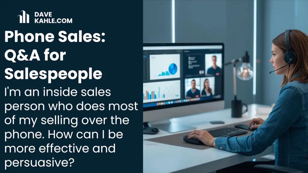 by Dave Kahle Q.  I am an inside sales person who does most of my selling over the phone and internet.  How can I be more effective and persuasive when I may never even meet my customers? 1. How can...