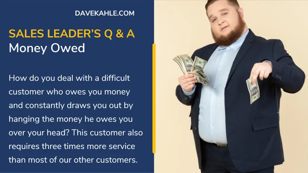 Question: How do you deal with a difficult customer who owes you money and constantly draws you out by hanging the money he owes you over your head? This customer also requires three times more service than most of our...